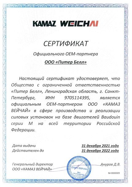 ООО "Питер Белл" официальный ОЕМ-партнер ООО "КАМАЗ ВЕЙЧАЙ"