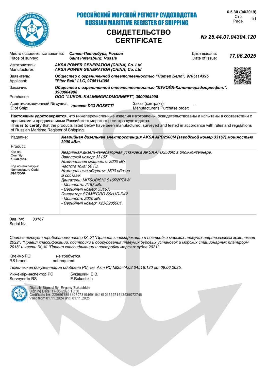 Сертификаты РМРС