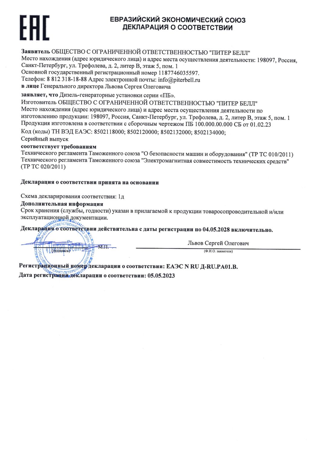 Полномочия ООО "Питер Белл"